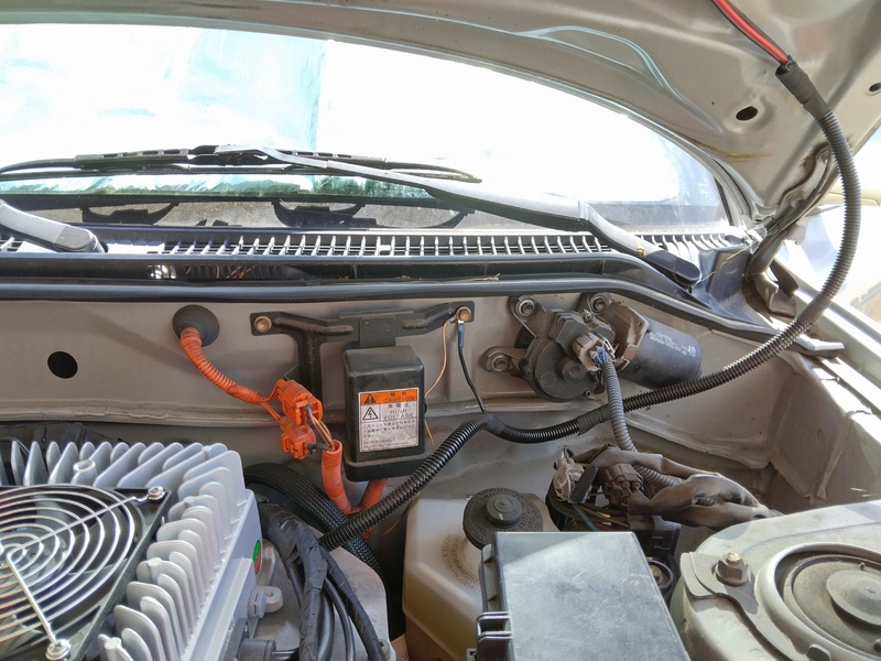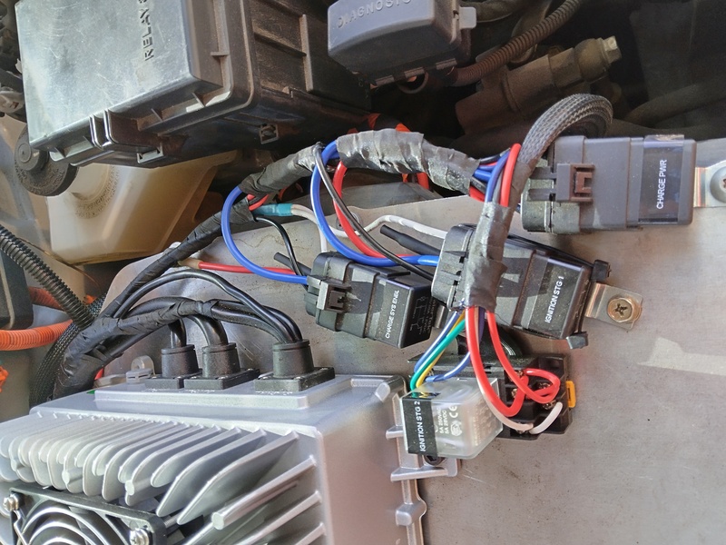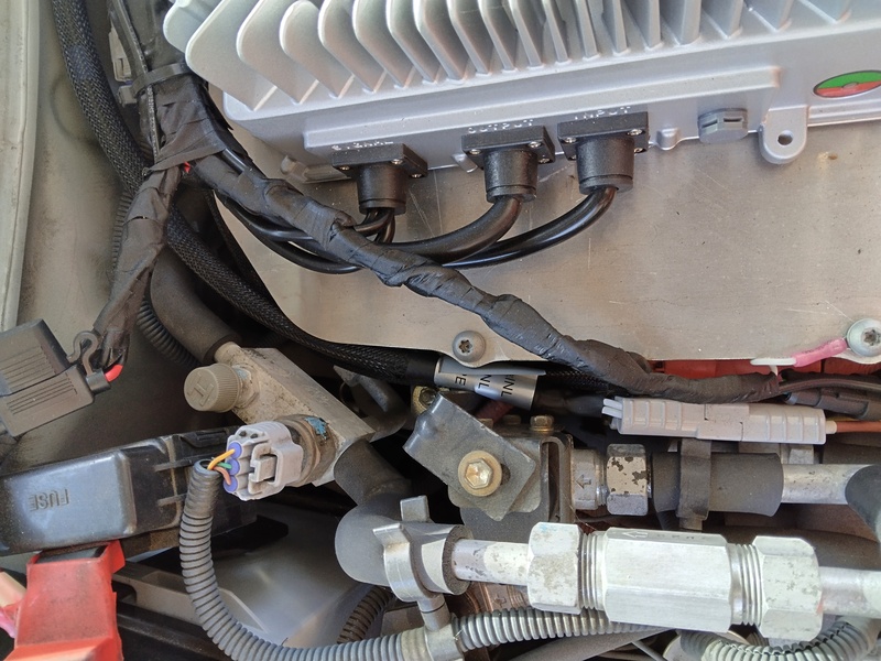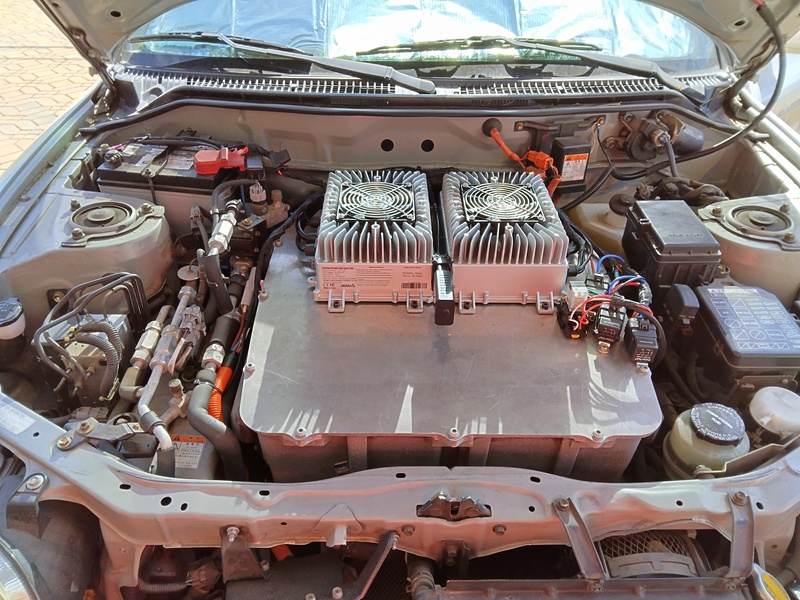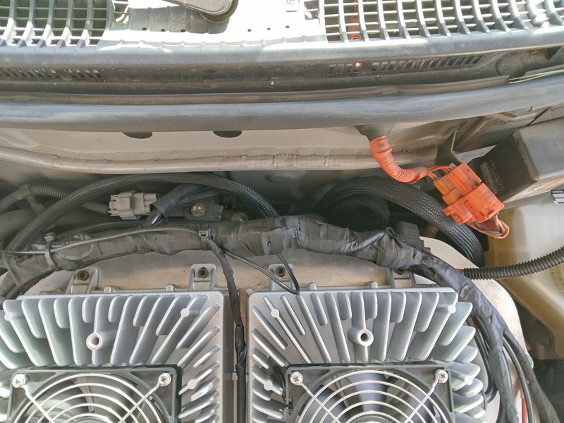 So we took them up on their offer to change the car to Lithium Iron Phosphate. They designed physical modules the same size ad the original NiMH, added an Orion BMS, twin chargers from China for ~4.5kW charging and some custom electronics. The chargers are installed on top of the silver suitcase (motor controller/inverter) by replacing the original cover with a piece of flat aluminum plate. Also on the plate are relays to control the charging logic.